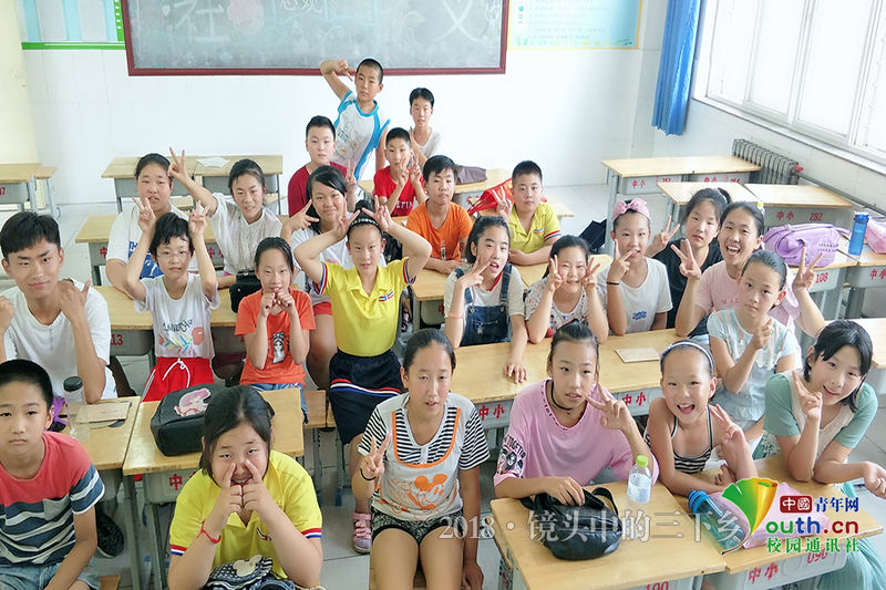 第一次上课后孩子们便与志愿者成为了好朋友,在镜头下笑靥如花。中国青年网通讯员 曹西月 摄