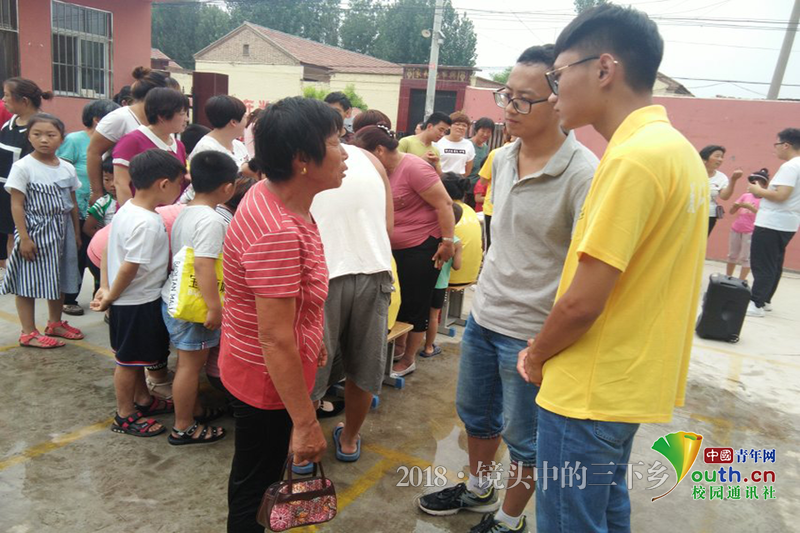 家长在向志愿者询问关于本次支教的一些问题。中国青年网通讯员 曹西月 摄