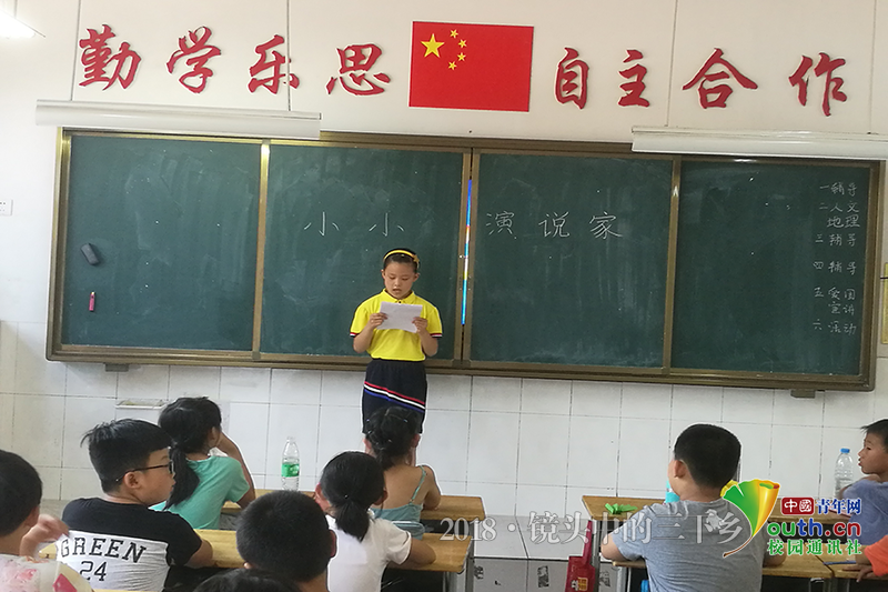 小小演说家:孩子们在进行课堂演讲,准备充分,热情洋溢。中国青年网通讯员 曹西月 摄