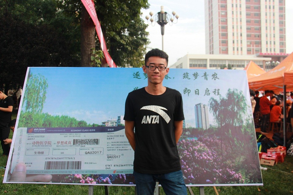为了让新生对入学第一天留下美好印象,学院特制了“梦想号”动物医学院2017级新生专属航班飞机票,机票上的始发地为动物医学院,目的地为梦想成真,登机口为生物楼,座位号为QAU2017。每位新生报道后都会在梦想号前拍照留念,定格入学瞬间,开启追梦之旅。