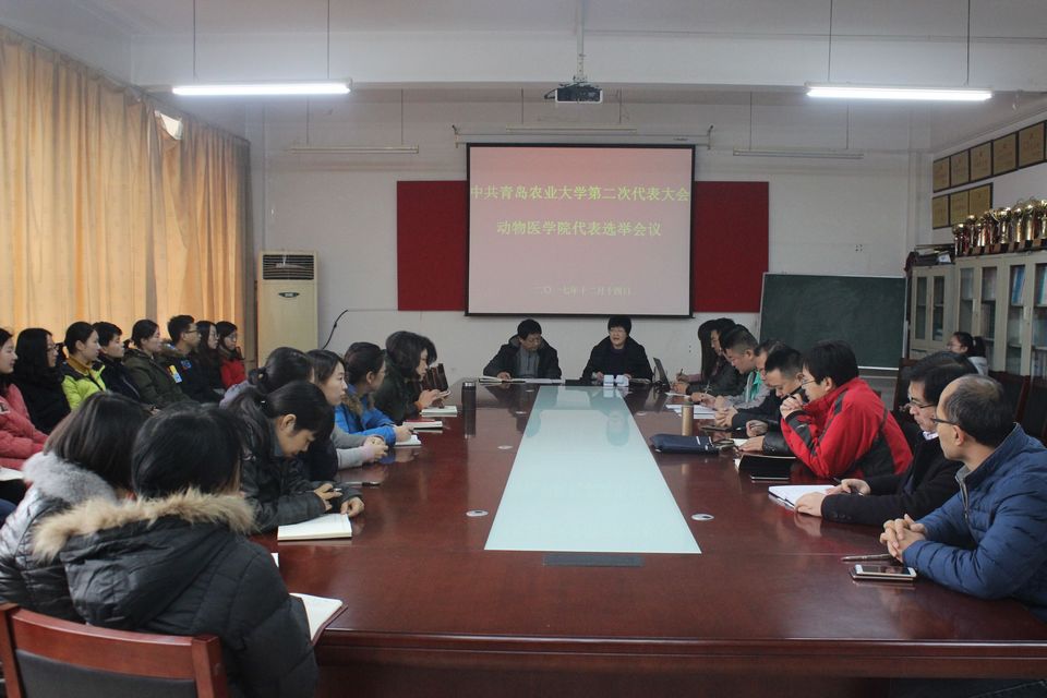 12月14日,动物医学院党总支在生物楼C205召开全体党员大会,严格按照选举办法,经无记名投票差额选举产生了孙运彩、单虎、于文慧、韩先杰、邹明五名同志作为代表出席中国共产党青岛农业大学第二次代表大会。
