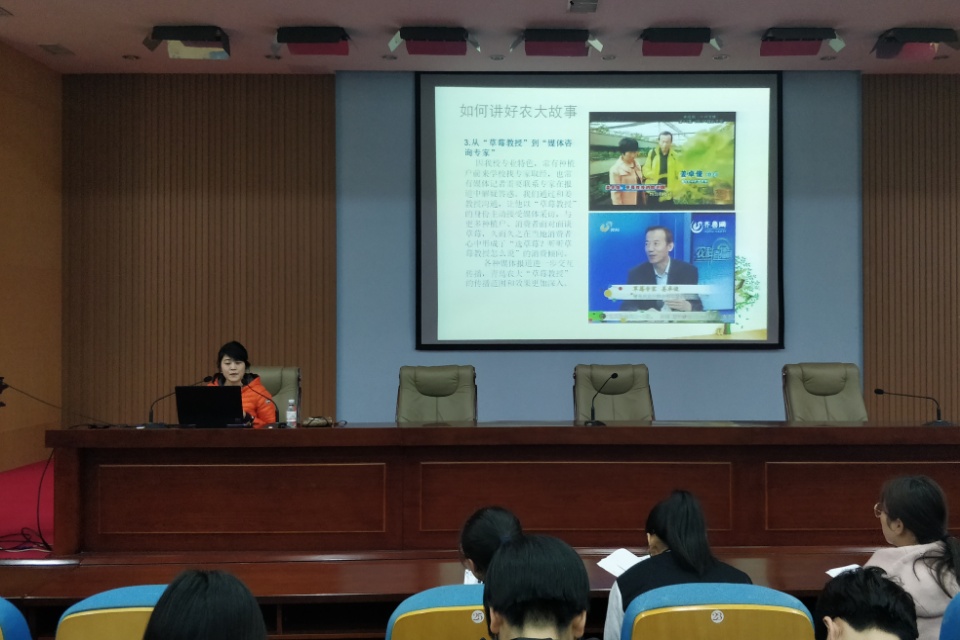 周维维主要从“大学里有哪些故事”、“怎样发掘故事”以及“怎样讲故事”这三个方面对新闻撰写工作进行了详细讲解。她以我校的“克隆牛故事”和“草莓教授”姜卓俊的新闻作为案例,为同学们讲解了新闻传播的方法和发现新闻故事的关键点。她指出好的新闻不光要有时间、地点、人物等几大要素,更要做到有血有肉富有情感。要做一名好的记者或者新闻撰写人,不仅要会写新闻,更要有对新闻事件的敏感性,善于发掘新闻。